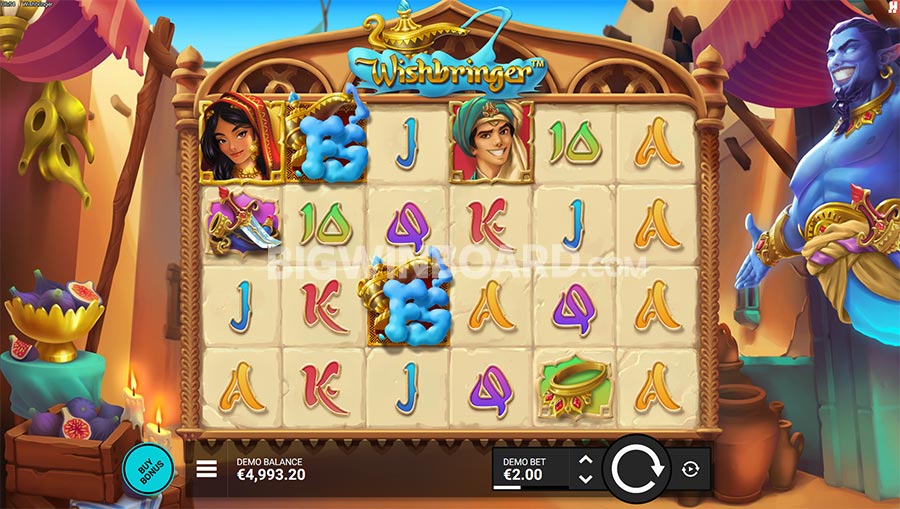 Arabian-flared card ranks from 10 to A are Wishbringer’s low pay symbols, while its highs are a necklace, some gold stuff, swords, a male character, and a female character. Royal wins of 6 OAK in size award 0.5 times the bet for all types, while a 6 OAK premium win pays 0.8 to 2 times the stake. For hawkplay players seeking bigger wins, keep an eye on those premium symbols!